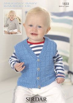 1833 Sirdar Snuggly Baby Bamboo Dk Waistcoat Cardigan Knitting Pattern 0 7 Years